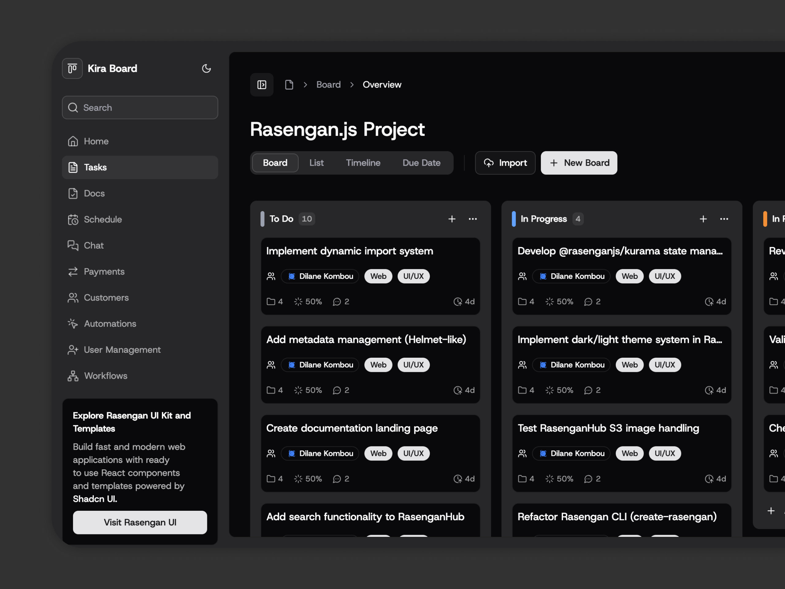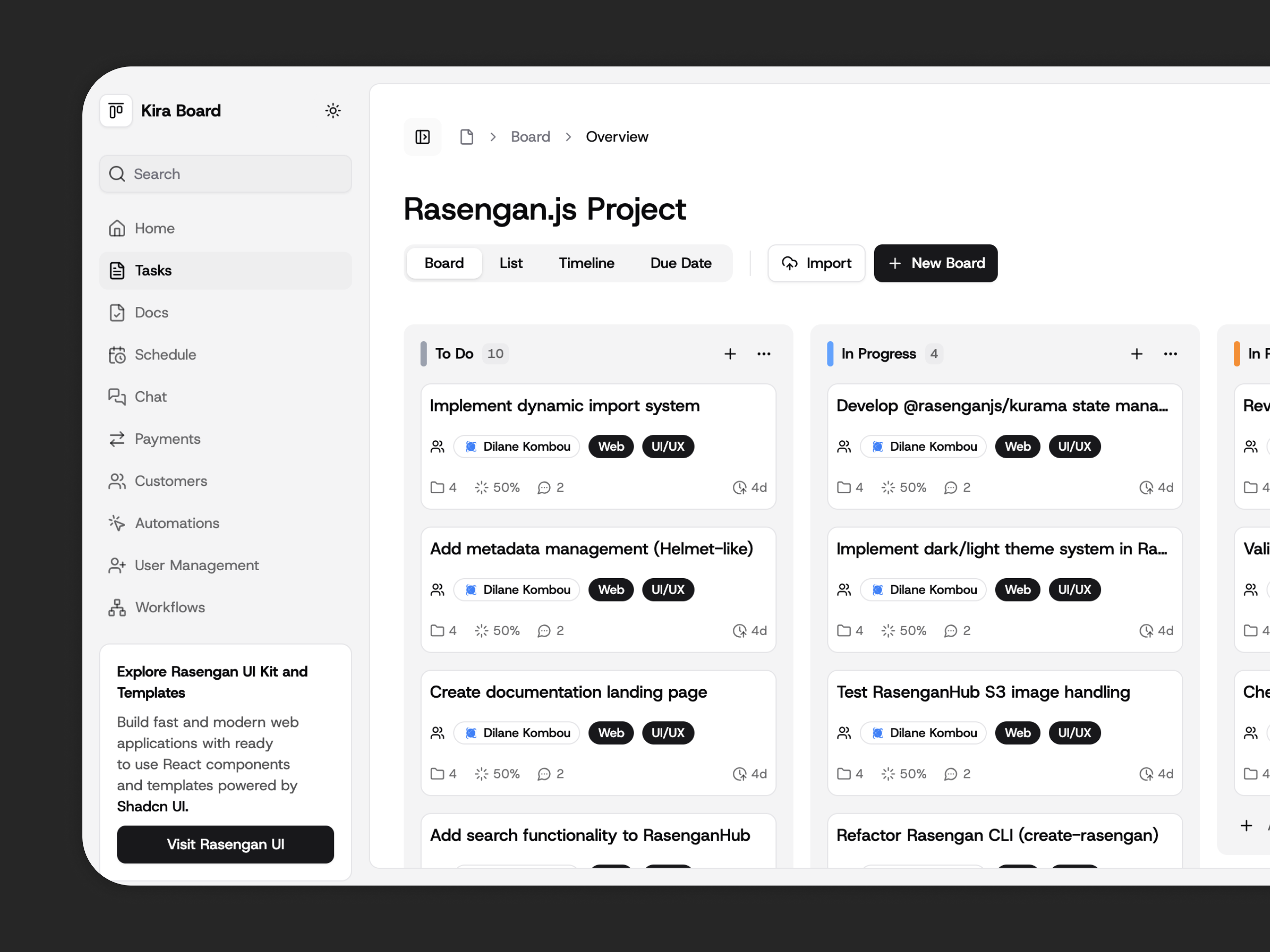 Rasengan UI Templates give you complete, high-quality starting points for marketing sites and web apps — all powered by Rasengan UI.